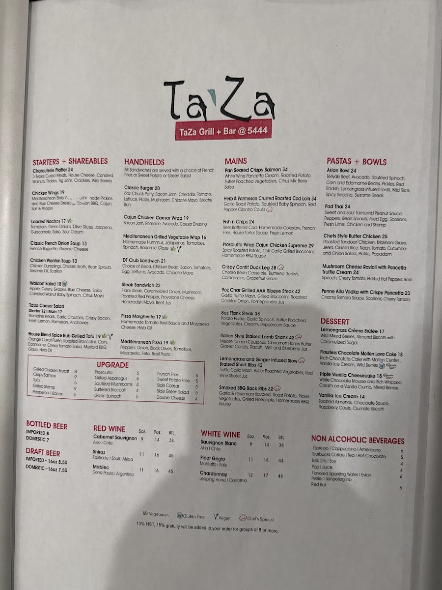 Introducing the menu of TaZa Grill + Bar, nestled within the DoubleTree Hotel at 5444 Dixie Road in Mississauga, promises an unforgettable culinary experience. Known for its fresh ingredients, TaZa delivers a delightful array of dishes that emphasize flavor and presentation. Customers rave about the roasted tandoori chicken, celebrated for its mouthwatering taste. The BBQ Shrimp Risotto and heavenly Crème Brûlée also garner high praise, showcasing the thoughtful variety on the menu.